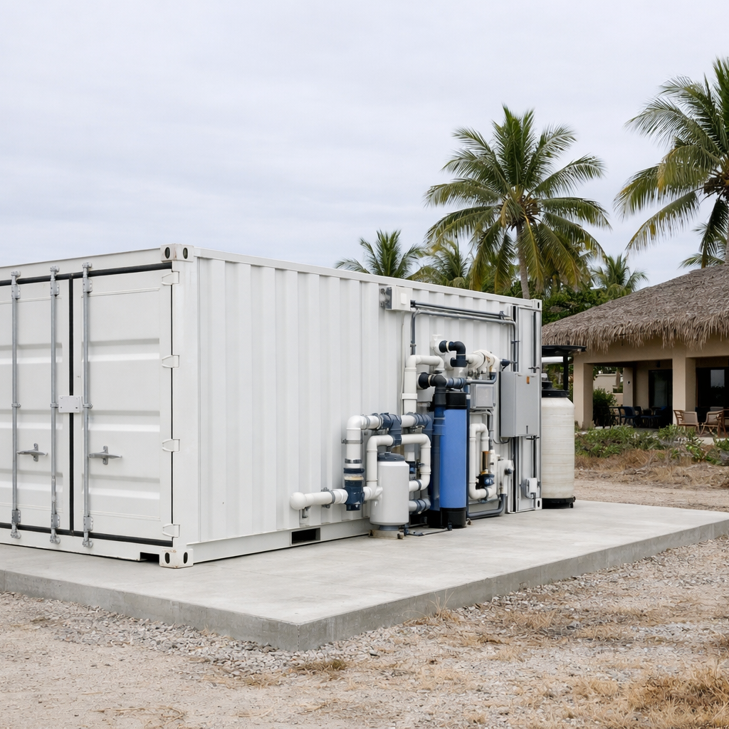Containerised desalination for island resorts, coastal hotels and remote hospitality operations.