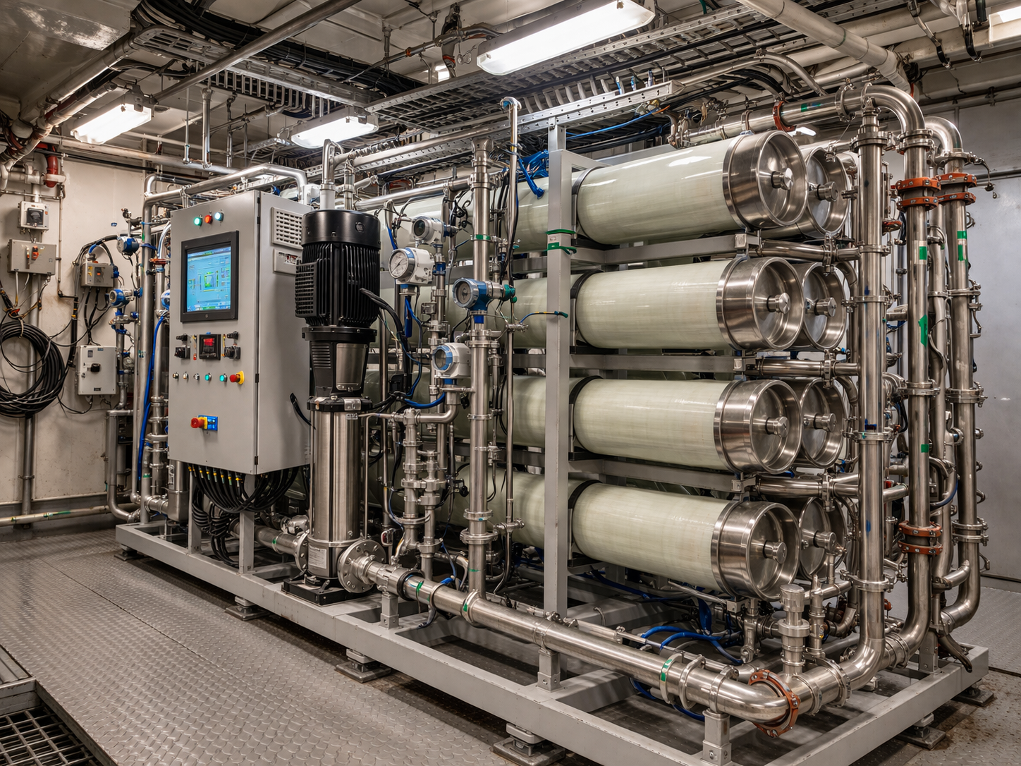 Seawater desalination and sewage treatment for submarines, warships, cruise ships, mega yachts and offshore platforms.